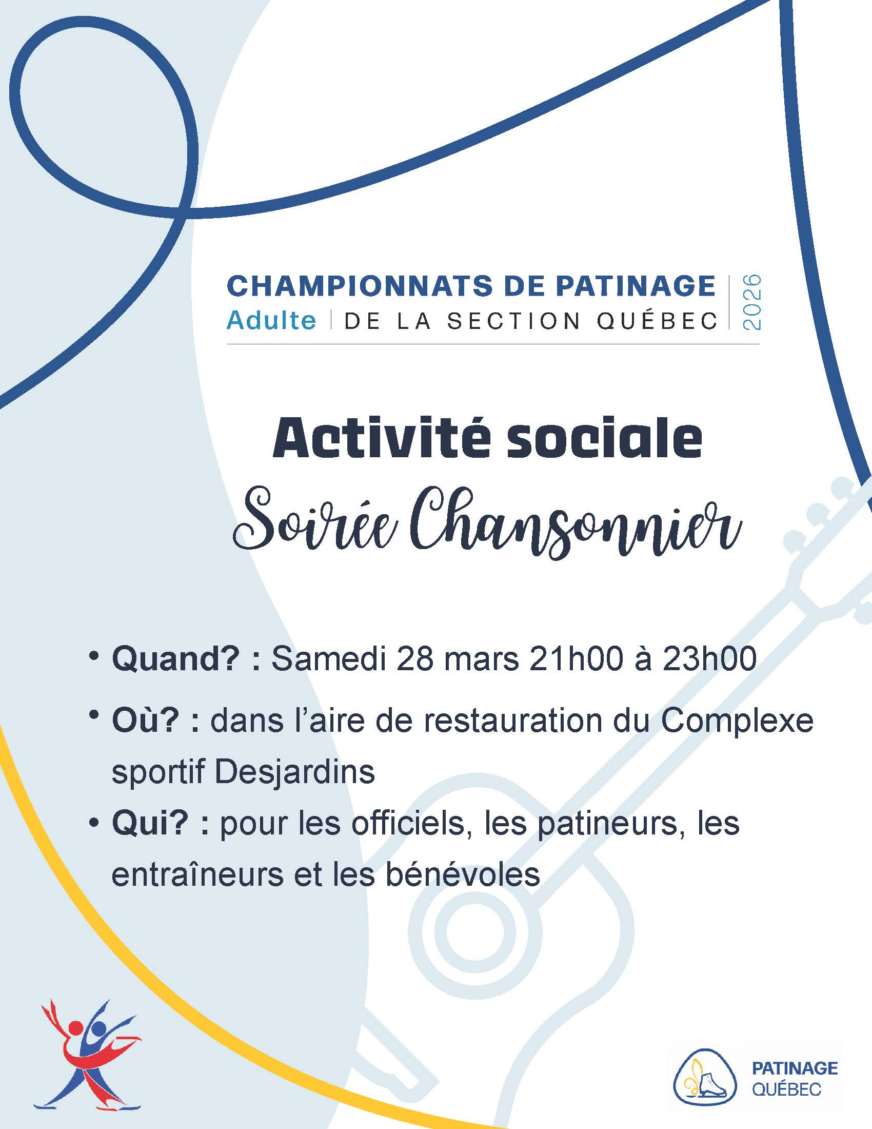 Cette dernière compétition de la saison accueille plus de 500 athlètes de patinage adultes dans les catégories, simple, couple, danse et synchro. C’est le rendez-vous provincial chez nos adultes et c’est lors de cette compétition que nous couronnons les champions québécois du patinage adulte.